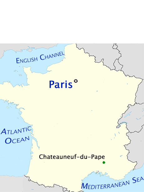 Chateauneuf-du-Pape (the Pope's new house) is a medieval village between the towns of Orange and Avignon and on the side of a hill, guarded by the ruins of an ancient chateau. From the chateau hill you have an outstanding view of vineyards in all directions.
